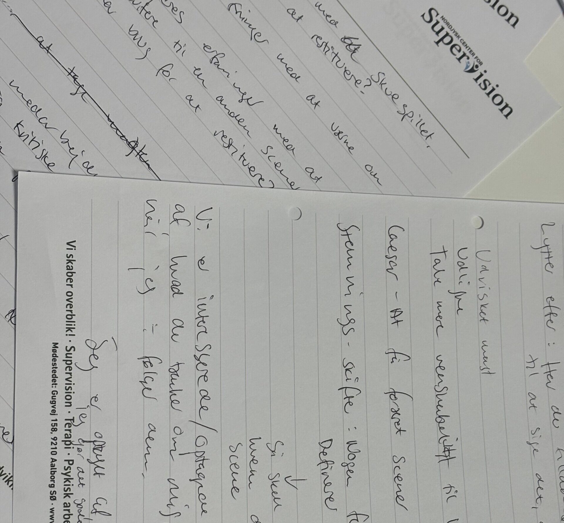 En bunke papirer med noter, halve sætninger og nedslag i tanker, der lige dér – i øjeblikket – fortjente at blive fanget, før de forsvandt igen.